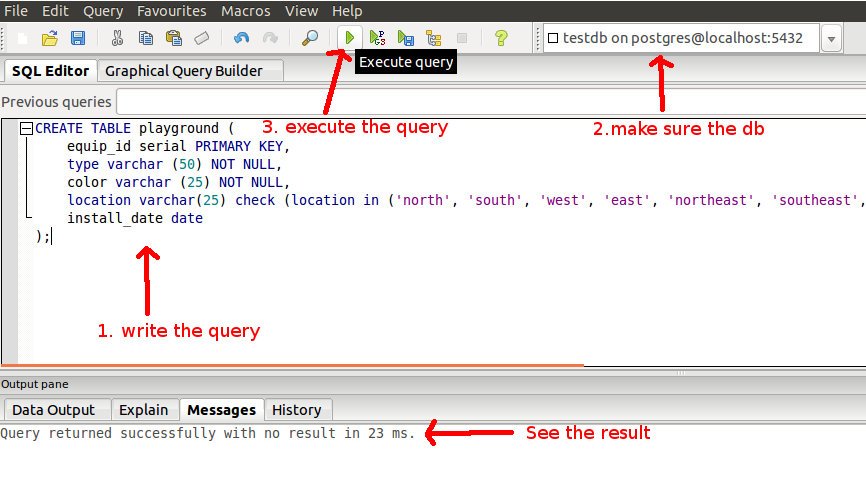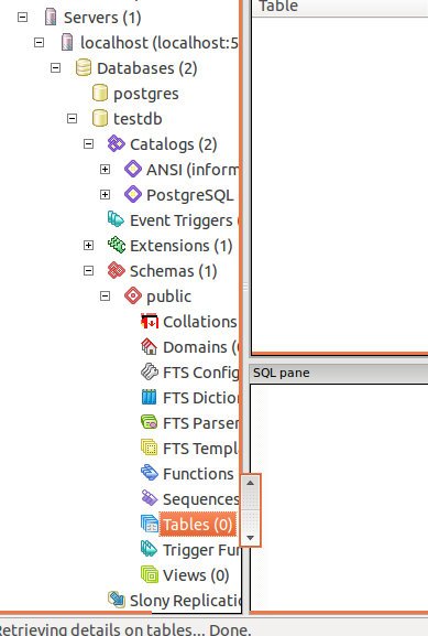 Create a new database. Select ‘Databases’->right click and click ‘New Database…’-> On ‘Name’ fill (for example) ‘testdb’