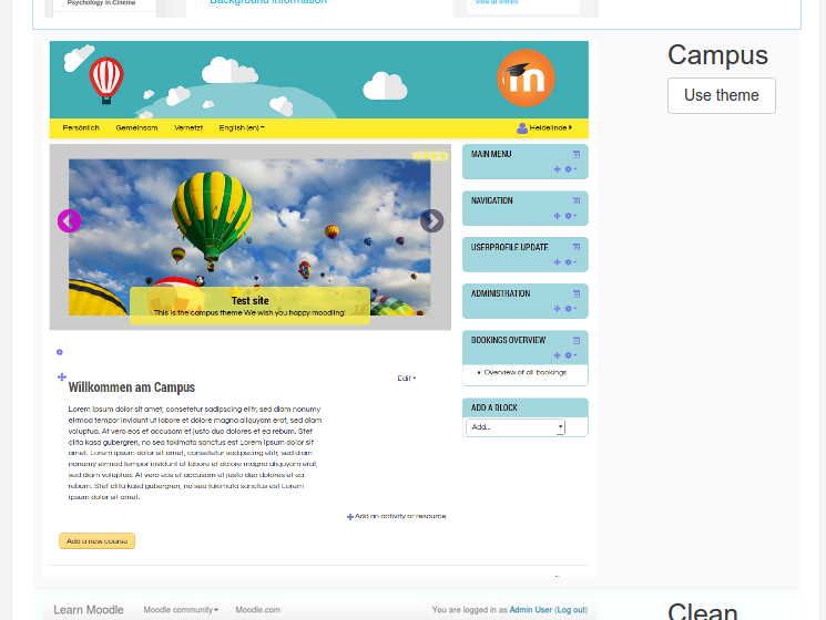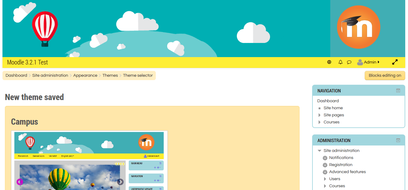 Then select ‘Campus’ theme. Click ‘Use theme’ button (http://localhost/works/moodle32/theme/index.php?confirmation=1&choose=campus).