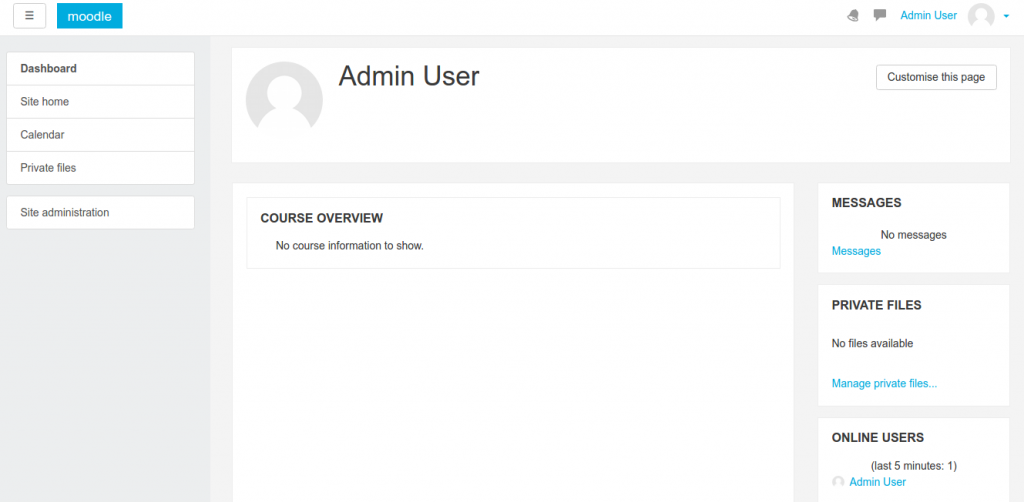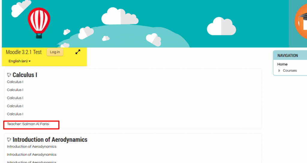 Logout from the admin account. Here is the frontpage (http://localhost/works/moodle32/) looks.