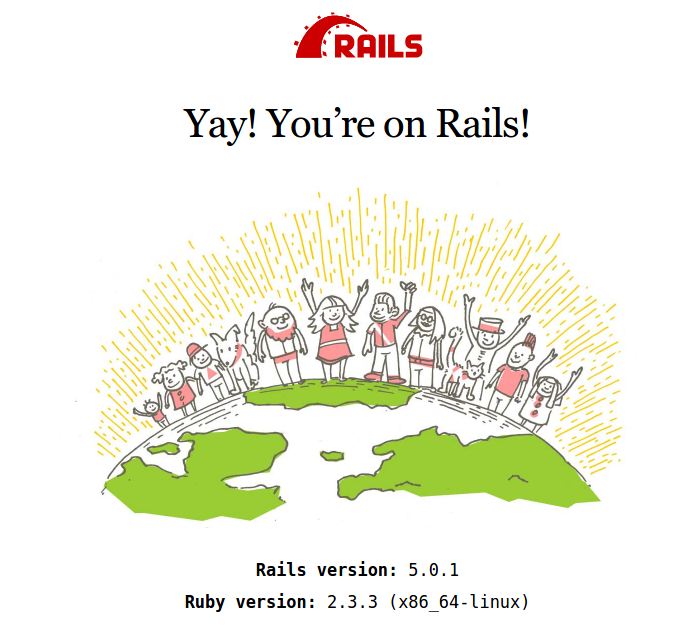 Then start the rails server (rails s) and open it in http://localhost:3000/. It should show this text: