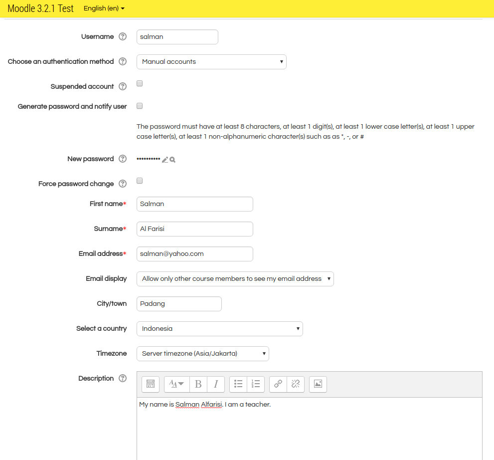 12Full site name (fullname) : Moodle 3.2.1 TestShort name for site (eg single word) (shortname) : moodle