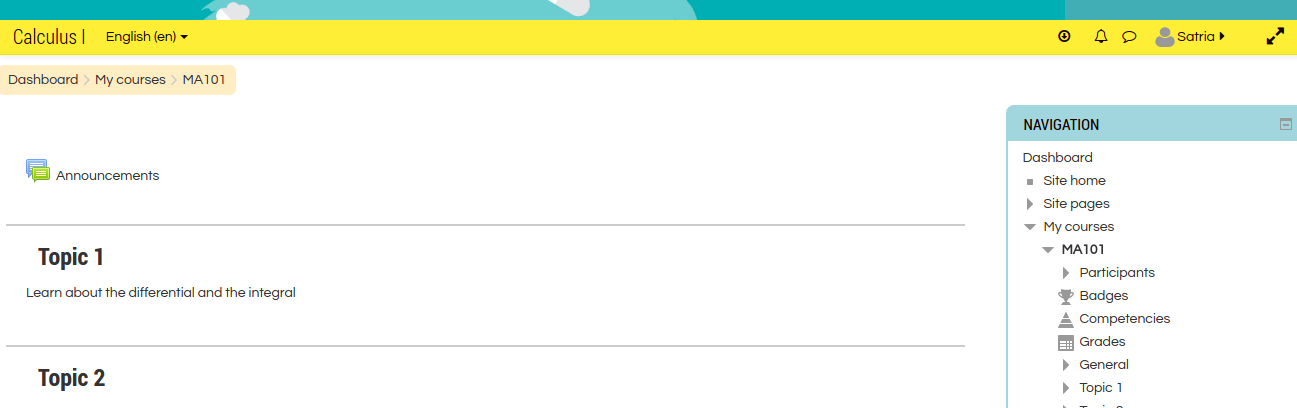 Then try to login as a student (user: satria, password: Satria@123). As a student, he/she can only read/view the courses (cannot edit the course).
