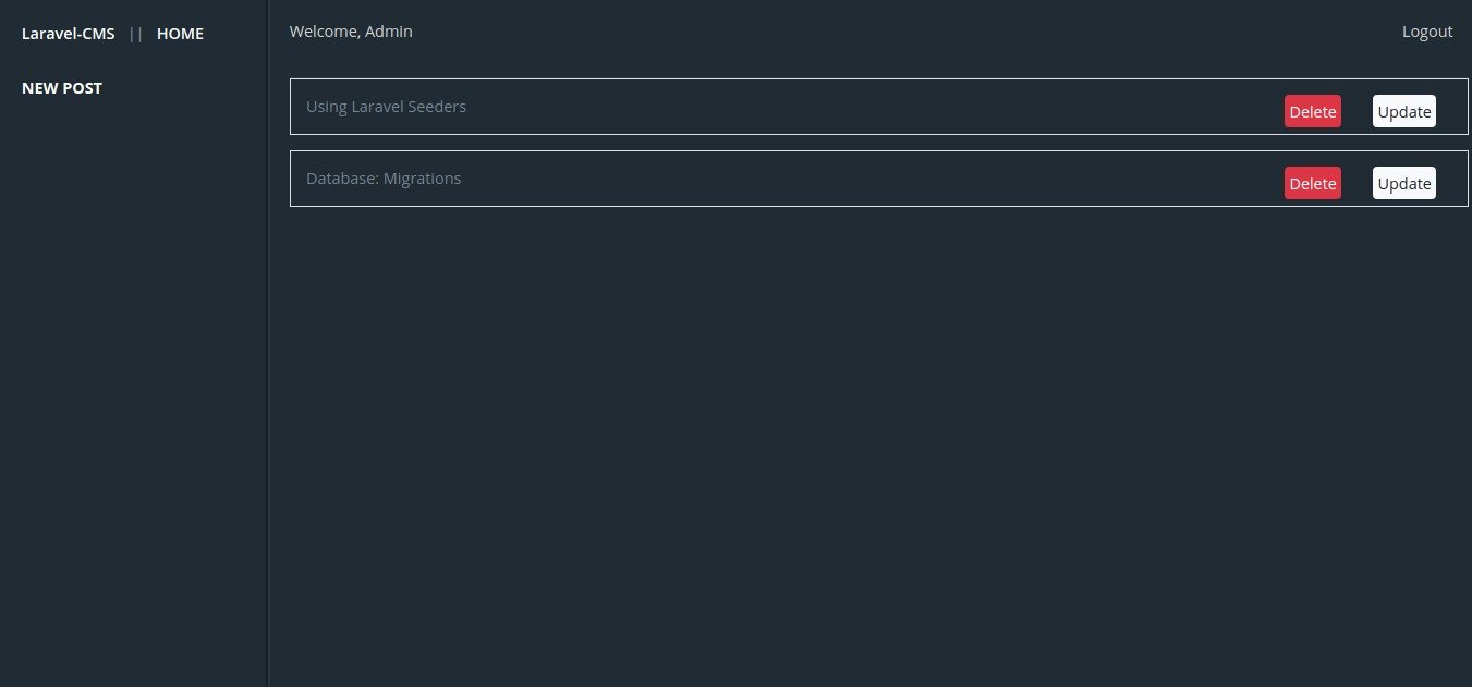 teddy@teddy:~/Documents/works/laravel/laravel-cms$ php artisan migrate:fresh --seed Dropped all tables successfully. Migration table created successfully. Migrating: 2014_10_12_000000_create_users_table Migrated: 2014_10_12_000000_create_users_table Migrating: 2014_10_12_100000_create_password_resets_table Migrated: 2014_10_12_100000_create_password_resets_table Migrating: 2019_01_21_031440_create_roles_table Migrated: 2019_01_21_031440_create_roles_table Migrating: 2019_01_21_032646_create_role_user_table Migrated: 2019_01_21_032646_create_role_user_table Migrating: 2019_01_21_083457_create_posts_table Migrated: 2019_01_21_083457_create_posts_table Migrating: 2019_01_30_042953_create_comments_table Migrated: 2019_01_30_042953_create_comments_table Seeding: RoleTableSeeder Seeding: UserTableSeeder Seeding: PostTableSeeder Database seeding completed successfully. |