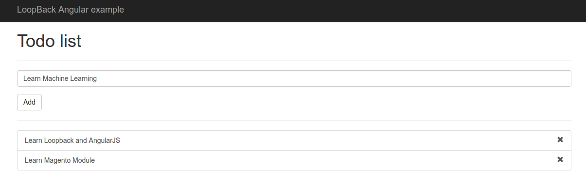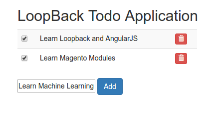In the app.js file we injected the ‘lbServices’ and defined three function (add, delete and update) for the basic CRUD operations. As you can see we used all the method exposed by the service created with the ‘lb-ng’ tool to interact with the backend. Most of this methods return a $promise that we used as callback to modify the client model.