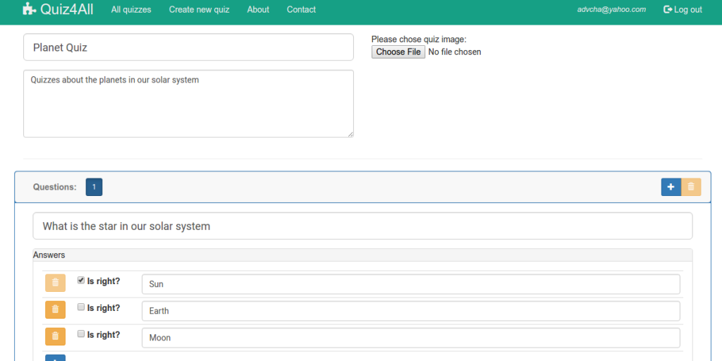 Anyway this is very good. But I think it needs some improvements like edit the quizzes (if user is logged in), admin panel, user member (student or admin), etc.