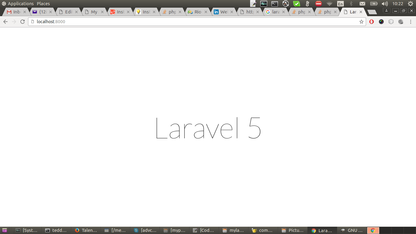 Check our database to make sure the new table ‘posts’ is already created! SOMEHOW THE OTHERS TABLES ‘migrations’, ‘users’ AND ‘password_resets’ ARE CREATED ALSO! - Test on the browser. Start the server: ‘php artisan serve’ then open on our browser : http://localhost:8000/ –> It shows the laravel welcome page!