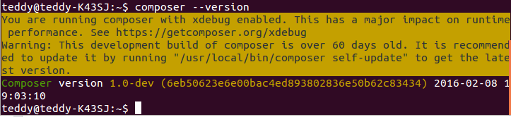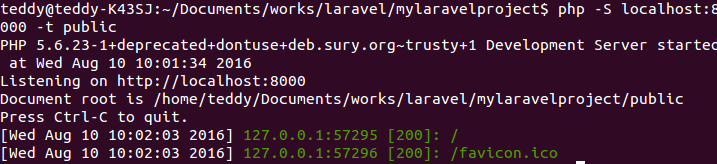123456789101112131415161718192021222324252627282930313233343536373839404142434445464748495051525354555657585960616263646566676869707172737475767778798081828384858687888990919293949596979899100101102103104105106107108109110111112113114115116117118119120121122123124125126127128129130131132133134135136137138139140141142143144145146147148149150151152153154155156157158159160161162163164165166167168169170171172173174175176177178179180181182183184185186187188189190191192193194195196197198199200201202203204205206207208209210211212213214215216217218219220221222223224225226227228229230231232233234235236237238239240241242243244245246247248249250251252253254255256teddy@teddy-K43SJ:~/Documents/works/laravel$ composer create-project --prefer-dist laravel/laravel latihan-crudWarning: This development build of composer is over 60 days old. It is recommended to update it by running "/usr/local/bin/composer self-update" to get the latest version.Installing laravel/laravel (v5.3.16)- Installing laravel/laravel (v5.3.16)Downloading: 100%Created project in latihan-crud> php -r "file_exists('.env') || copy('.env.example', '.env');"Loading composer repositories with package informationUpdating dependencies (including require-dev)- Installing vlucas/phpdotenv (v2.4.0)Downloading: 100%- Installing symfony/polyfill-mbstring (v1.2.0)Loading from cache- Installing symfony/var-dumper (v3.1.5)Downloading: 100%- Installing symfony/translation (v3.1.5)Downloading: 100%- Installing symfony/routing (v3.1.5)Downloading: 100%- Installing symfony/process (v3.1.5)Downloading: 100%- Installing psr/log (1.0.2)Downloading: 100%- Installing symfony/debug (v3.1.5)Downloading: 100%- Installing symfony/http-foundation (v3.1.5)Downloading: 100%- Installing symfony/event-dispatcher (v3.1.5)Loading from cache- Installing symfony/http-kernel (v3.1.5)Downloading: 100%- Installing symfony/finder (v3.1.5)Downloading: 100%- Installing symfony/console (v3.1.5)Downloading: 100%- Installing swiftmailer/swiftmailer (v5.4.3)Loading from cache- Installing paragonie/random_compat (v2.0.3)Downloading: 100%- Installing ramsey/uuid (3.5.1)Downloading: 100%- Installing jakub-onderka/php-console-color (0.1)Loading from cache- Installing jakub-onderka/php-console-highlighter (v0.3.2)Loading from cache- Installing dnoegel/php-xdg-base-dir (0.1)Loading from cache- Installing nikic/php-parser (v2.1.1)Downloading: 100%- Installing psy/psysh (v0.7.2)Loading from cache- Installing nesbot/carbon (1.21.0)Loading from cache- Installing mtdowling/cron-expression (v1.1.0)Loading from cache- Installing monolog/monolog (1.21.0)Loading from cache- Installing league/flysystem (1.0.32)Downloading: 100%- Installing symfony/polyfill-util (v1.2.0)Loading from cache- Installing symfony/polyfill-php56 (v1.2.0)Loading from cache- Installing jeremeamia/superclosure (2.2.0)Loading from cache- Installing doctrine/inflector (v1.1.0)Loading from cache- Installing classpreloader/classpreloader (3.0.0)Loading from cache- Installing laravel/framework (v5.3.19)Downloading: 100%- Installing fzaninotto/faker (v1.6.0)Loading from cache- Installing hamcrest/hamcrest-php (v1.2.2)Loading from cache- Installing mockery/mockery (0.9.5)Loading from cache- Installing symfony/yaml (v3.1.5)Downloading: 100%- Installing sebastian/version (2.0.0)Downloading: 100%- Installing sebastian/resource-operations (1.0.0)Downloading: 100%- Installing sebastian/recursion-context (1.0.2)Loading from cache- Installing sebastian/object-enumerator (1.0.0)Downloading: 100%- Installing sebastian/global-state (1.1.1)Loading from cache- Installing sebastian/exporter (1.2.2)Loading from cache- Installing sebastian/environment (1.3.8)Downloading: 100%- Installing sebastian/diff (1.4.1)Loading from cache- Installing sebastian/comparator (1.2.0)Loading from cache- Installing doctrine/instantiator (1.0.5)Loading from cache- Installing phpunit/php-text-template (1.2.1)Loading from cache- Installing phpunit/phpunit-mock-objects (3.4.0)Downloading: 100%- Installing phpunit/php-timer (1.0.8)Loading from cache- Installing phpunit/php-file-iterator (1.4.1)Loading from cache- Installing sebastian/code-unit-reverse-lookup (1.0.0)Downloading: 100%- Installing phpunit/php-token-stream (1.4.8)Loading from cache- Installing phpunit/php-code-coverage (4.0.1)Downloading: 100%- Installing webmozart/assert (1.1.0)Downloading: 100%- Installing phpdocumentor/reflection-common (1.0)Loading from cache- Installing phpdocumentor/type-resolver (0.2)Loading from cache- Installing phpdocumentor/reflection-docblock (3.1.1)Downloading: 100%- Installing phpspec/prophecy (v1.6.1)Loading from cache- Installing myclabs/deep-copy (1.5.4)Downloading: 100%- Installing phpunit/phpunit (5.6.1)Downloading: 100%- Installing symfony/css-selector (v3.1.5)Downloading: 100%- Installing symfony/dom-crawler (v3.1.5)Downloading: 100%symfony/var-dumper suggests installing ext-symfony_debug ()symfony/translation suggests installing symfony/config ()symfony/routing suggests installing doctrine/annotations (For using the annotation loader)symfony/routing suggests installing symfony/config (For using the all-in-one router or any loader)symfony/routing suggests installing symfony/dependency-injection (For loading routes from a service)symfony/routing suggests installing symfony/expression-language (For using expression matching)symfony/event-dispatcher suggests installing symfony/dependency-injection ()symfony/http-kernel suggests installing symfony/browser-kit ()symfony/http-kernel suggests installing symfony/class-loader ()symfony/http-kernel suggests installing symfony/config ()symfony/http-kernel suggests installing symfony/dependency-injection ()paragonie/random_compat suggests installing ext-libsodium (Provides a modern crypto API that can be used to generate random bytes.)ramsey/uuid suggests installing ircmaxell/random-lib (Provides RandomLib for use with the RandomLibAdapter)ramsey/uuid suggests installing ext-libsodium (Provides the PECL libsodium extension fo