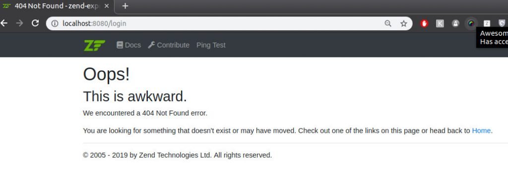 We fixed those errors until here. When we refresh our browser, we’d get the login page. But the content is showing 404 because we haven’t defined the login page!